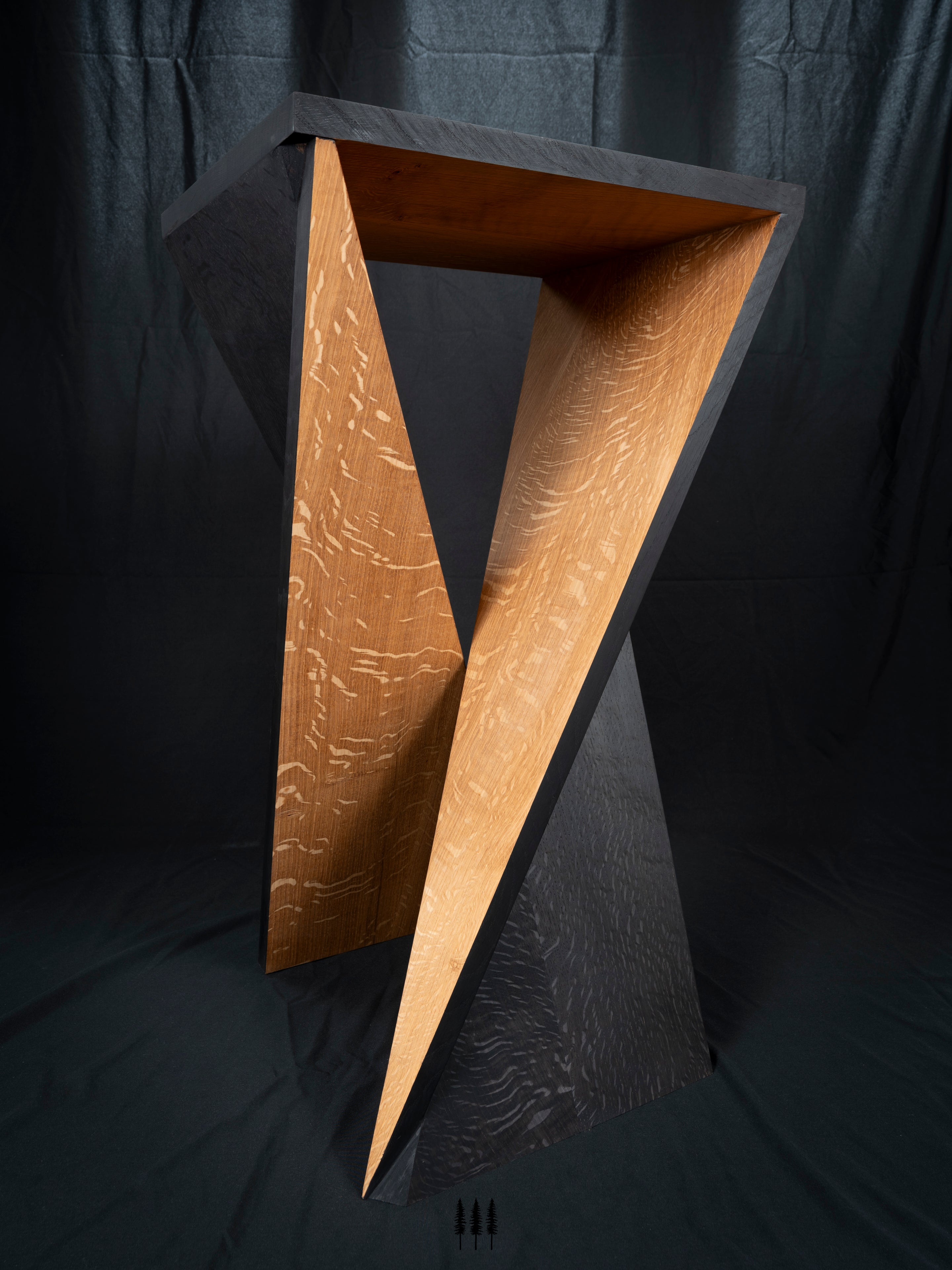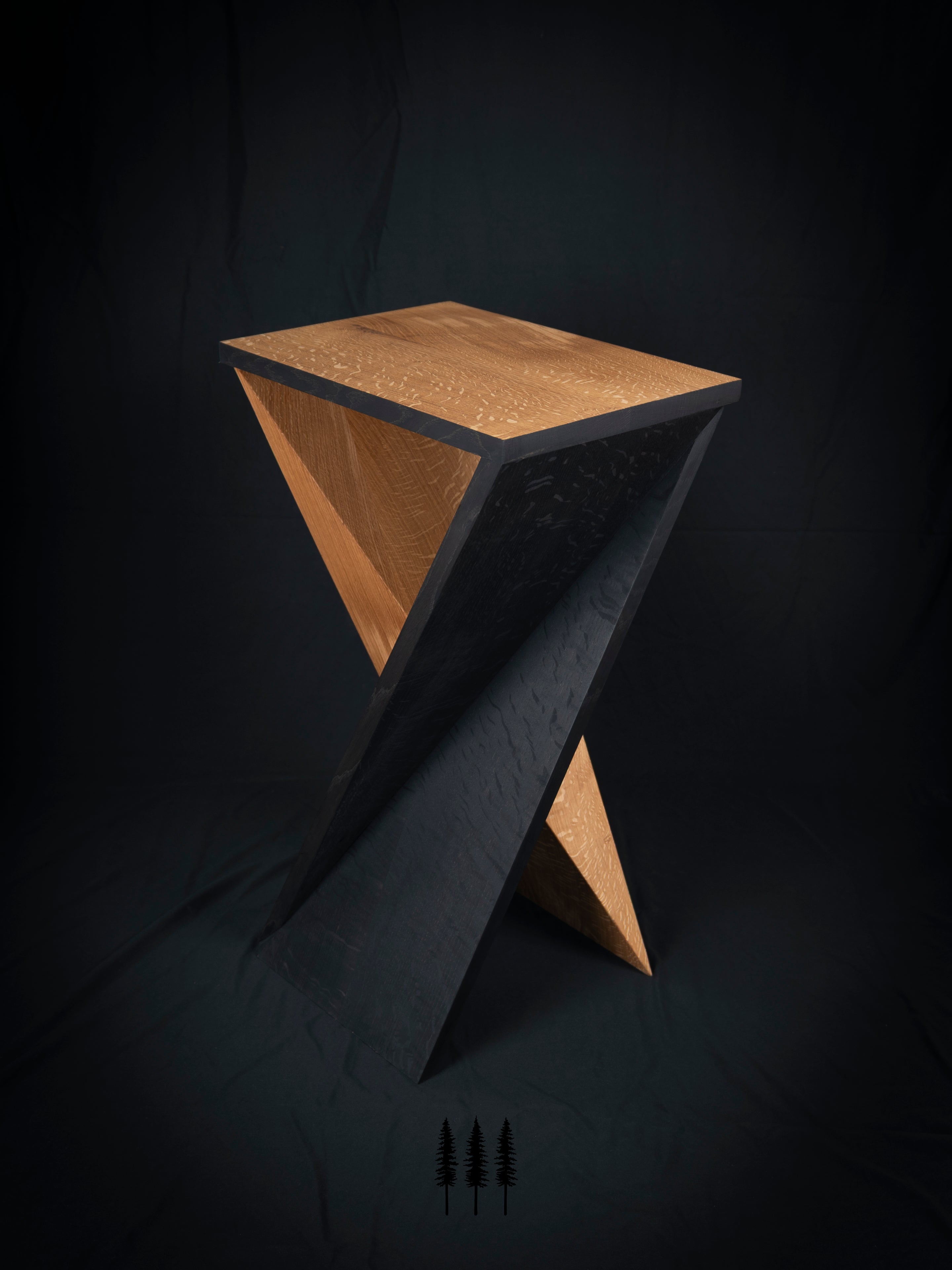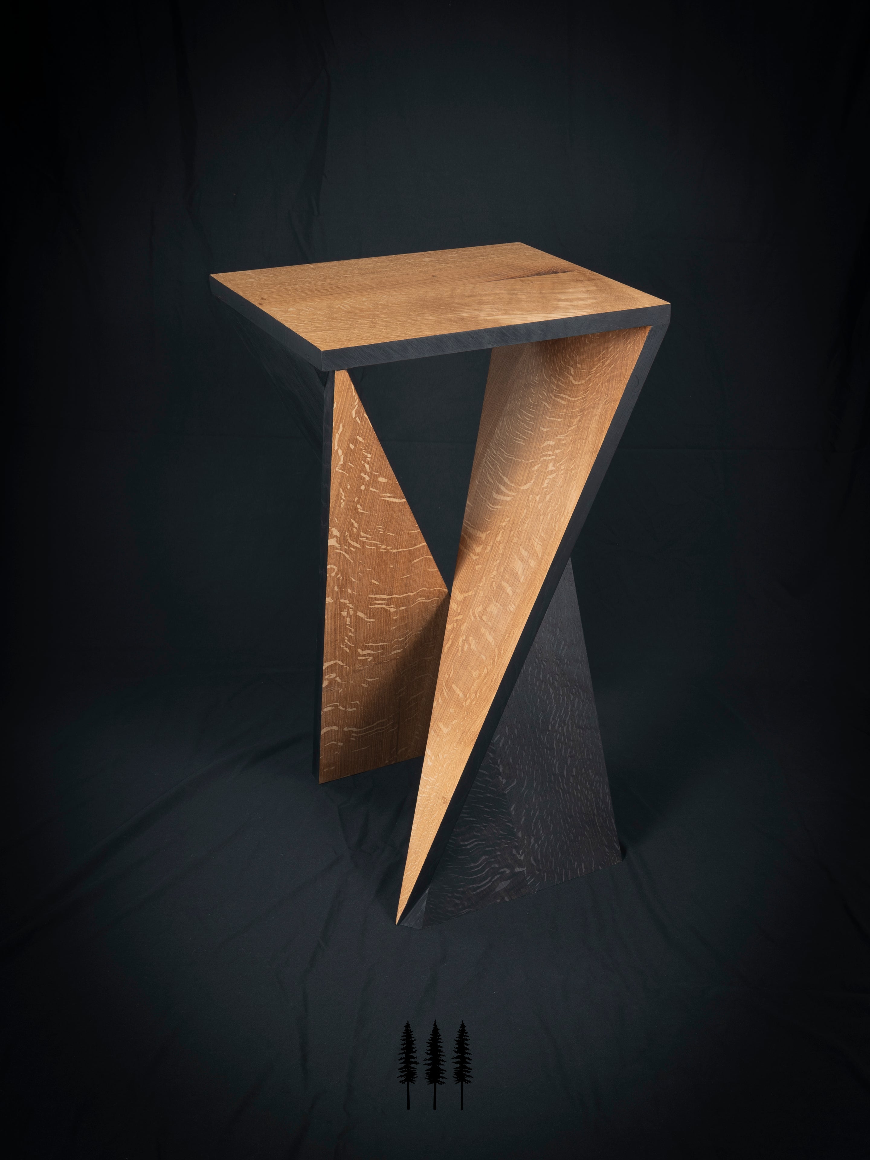 The client requested a set of unique side tables for their indoor/outdoor living space. These tables were paired with a custom step box for use with a hanging day bed. Each piece was hand-crafted with Oregon quarter sawn white oak, ebonized with iron acetate, and finished with RMP Finishes Outdoor Defense Oil for long-lasting protection.